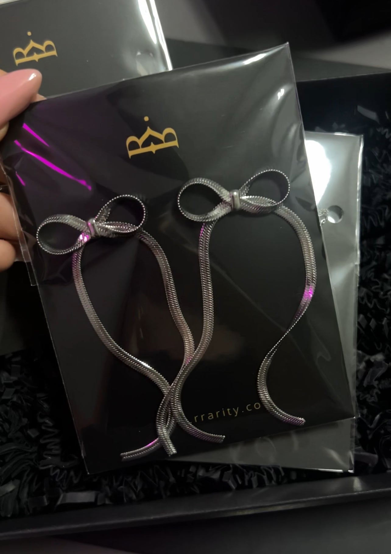 Kolczyki żmijka z kokardką, wykonane ze stali szlachetnej. Nada się idealnie jako statement piece do eleganckiego, wieczorowego ubioru. Sprawdzą się jako zestaw z naszyjnikiem Bow Chain. Dostępne w dwóch kolorach, pozłacany 18-karatowym złotem lub w kolorze srebrnym
