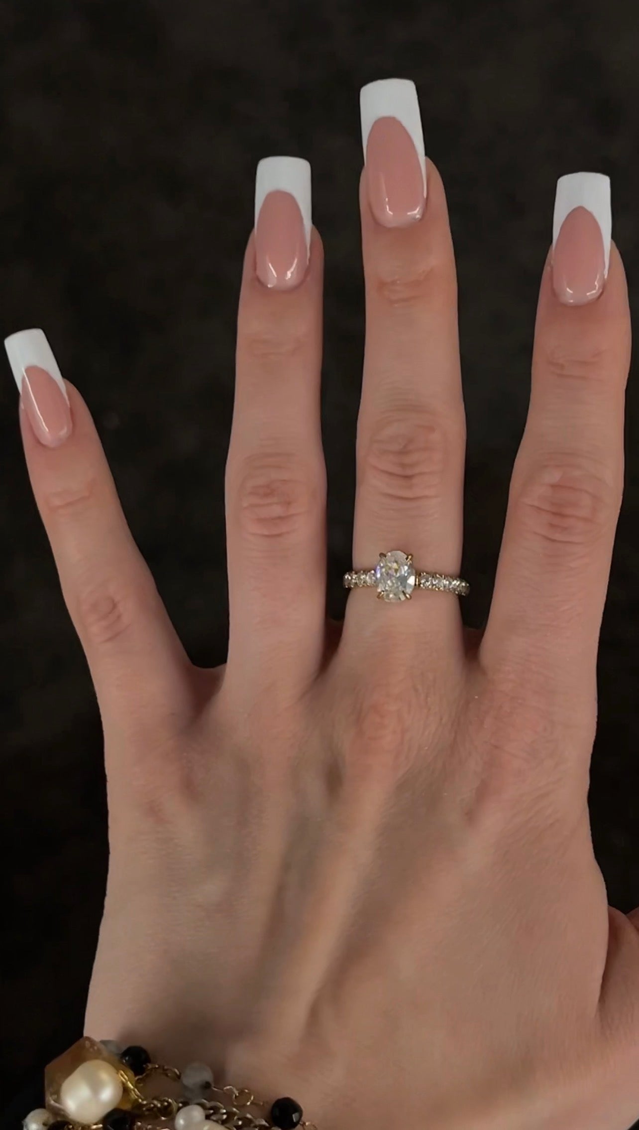 Pierścionek z owalną cyrkonią główną oraz obrączką osadzaną okrągłymi cyrkoniami, sprawdzi się idealnie jako element główny bądź dodatkowy.