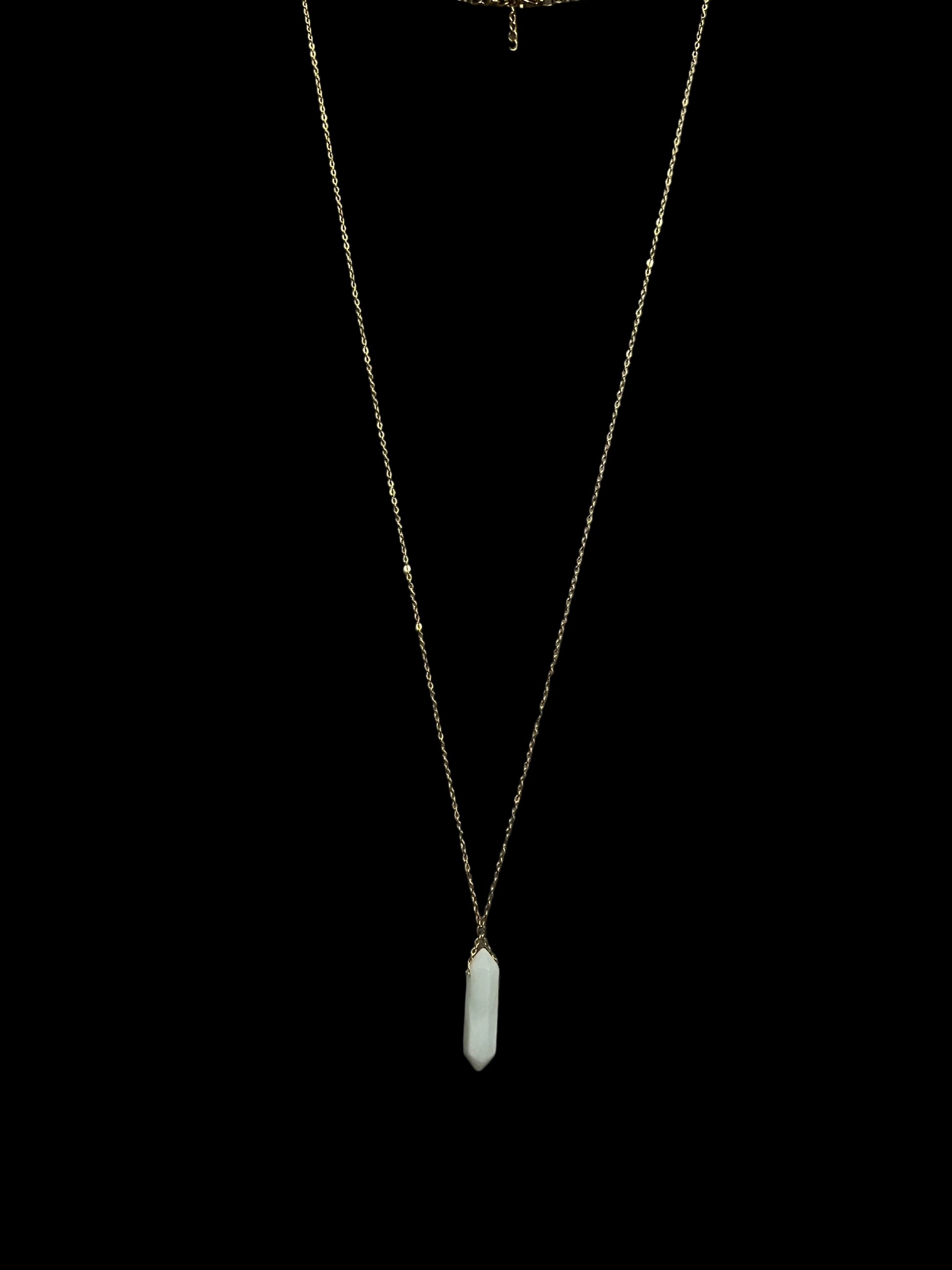Winter Necklace to długi łańcuszek z zawieszką z amazonitem o błękitnym odcieniu. Niesie spokojną, klarowną energię, jak cicha, chłodna zima, która wycisza i porządkuje to, co ważne. Kamień koi emocje, pomaga odnaleźć równowagę i jasność myśli.